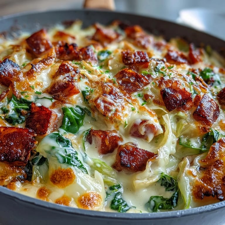 Merken An unexpected snow day trapped me in the kitchen with half a head of cabbage and some leftover ham, and I decided to throw together whatever creamy components I had on hand. What emerged was this remarkably simple skillet that turned a lazy afternoon into something genuinely comforting. The way the cabbage softens into nearly translucent ribbons while the ham creates little pockets of savory richness throughout—it felt like discovering a recipe I'd somehow always known. Now whenever I need dinner on the table in under thirty minutes, this is what I reach for.