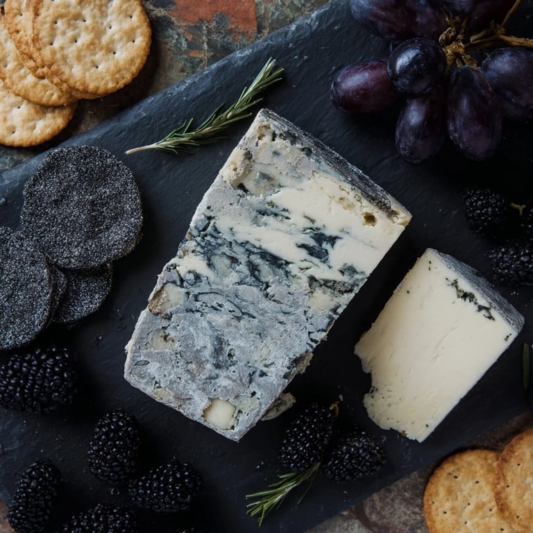 - Valdeon Blauschimmelkäse oder anderer Blauschimmel mit grauer Äderung (100 g): Bringt eine würzige, tiefe Note hinzu. Die grauweißen Adern passen perfekt zur monochromen Farbpalette.