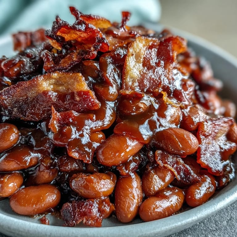 Merken There's something about the smell of bacon sizzling in a cast iron skillet that instantly transports me to my uncle's backyard on the Fourth of July, where his legendary baked beans were somehow always the first dish to vanish from the buffet table. My aunt finally shared his secret years later: brown sugar, molasses, and enough bacon to make you forget about everything else on the grill. Now whenever I make this version, I find myself standing in front of the oven with a silly grin, watching those bubbling beans through the glass door like they're the most important thing happening all summer.