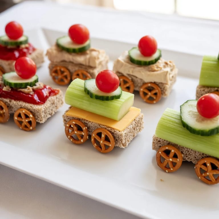 Merken Dieses Gericht schafft fröhliche Familienmomente, wenn Kinder zusammen den essbaren Zug bauen und genießen.
