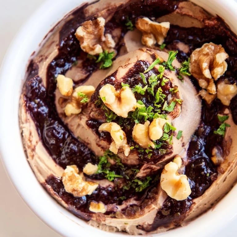 Serviere das mit einem guten Glas Sauternes oder einem leichten Pinot Noir – die süßlichen Noten des Weins umarmen die Marmelade, während der Alkohol die Reichhaltigkeit der Pâté ausgleicht. Ich habe auch festgestellt, dass dieses Gericht wunderbar funktioniert, wenn du es 30 Minuten vor dem Servieren zubereitest – die Schichten setzen sich ab und die Aromen vermischen sich subtil.