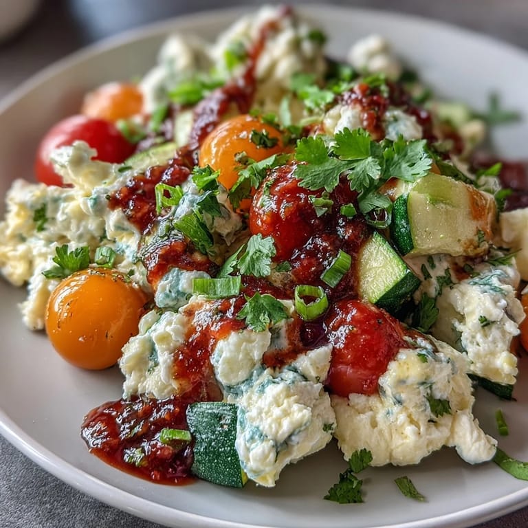 Merken Whether you're looking for a protein-rich breakfast to kickstart your day or a light, nutritious meal as part of your weight management journey, this Egg White Veggie Scramble with Salsa delivers on all fronts. With just 20 minutes of your time, you can create a colorful plate that's as pleasing to the eye as it is to your palate. The combination of fresh vegetables, fluffy egg whites, and zesty salsa creates a balanced meal that will leave you satisfied without weighing you down.