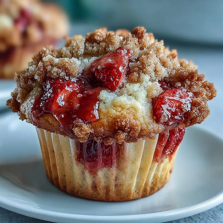 Merken Last summer, I was standing in my kitchen on a Saturday morning when a friend texted asking if I had any fresh strawberries. I did, but barely, and instead of letting them sit in the fridge until they turned soft, I decided to bake something that would celebrate them properly. These muffins came together almost by accident, but the combination of tart lemon zest with sweet berries and that buttery crumble top made the whole place smell like a farmers market had moved into my oven. Now whenever strawberries appear in my life, this recipe is the first thing that comes to mind.