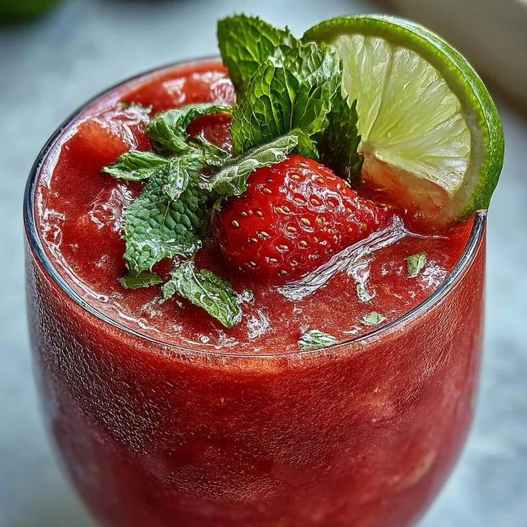 Merken When the summer sun blazes and you crave something cool and vibrant, this Strawberry Watermelon Daiquiri Mocktail with Mint delivers pure refreshment in every sip. Combining the natural sweetness of ripe strawberries and juicy watermelon with the bright zing of fresh lime and the cooling touch of mint, this alcohol-free drink is a celebration of seasonal flavors. Perfect for poolside gatherings, festive brunches, or simply enjoying a moment of calm on a hot afternoon, this mocktail proves that you don't need alcohol to create something truly special.
