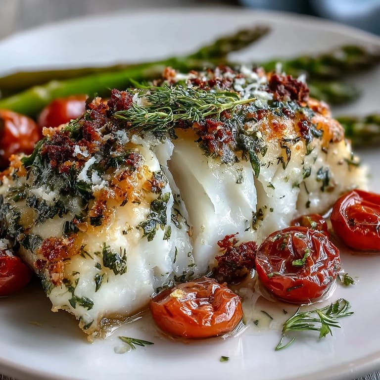 Merken There's something about a sheet pan dinner that changed my weeknight approach to cooking entirely. One Tuesday evening, I had maybe thirty minutes before friends arrived, a pristine package of cod in the fridge, and absolutely no plan beyond that. I tossed together whatever bright things I could find—lemon, garlic, fresh thyme from my garden—spread them across one pan with some asparagus and tomatoes, and walked away. When that fish came out of the oven, flaking like clouds at the gentlest touch of a fork, I realized I'd stumbled onto something I'd actually want to repeat.