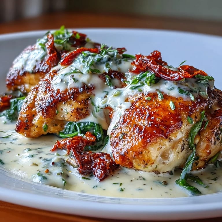 Merken Eines Abends, als ich nach einem langen Tag nach Hause kam, öffnete ich den Kühlschrank und sah Hähnchenbrust, schwere Sahne und ein Glas Sonnenblumtomaten, die dort seit Wochen warteten. Ich hatte keine große Lust zu kochen, aber dann kam mir dieser Gedanke: Was wäre, wenn ich alles zusammen in eine Pfanne werfe? Das Ergebnis war dieses cremige toskanische Hähnchen, das so köstlich war, dass ich es seitdem ständig zubereite. Es ist der Beweis, dass die besten Mahlzeiten manchmal aus reiner Ungeduld entstehen.