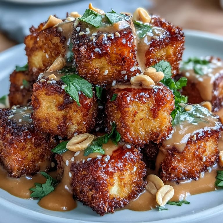 Merken Ich entdeckte knusprigen Tofu durch Zufall an einem regnerischen Abend, als mein Air Fryer endlich aus der Schachtel kam und ich absolut keine Ahnung hatte, was ich damit anfangen sollte. Ein Freund schlug vor, Tofu zu versuchen, und ich war skeptisch, bis die ersten goldenen Würfel herauskamen und das ganze Haus nach gerösteten Erdnüssen und Knoblauch roch. Diese Kombination aus knuspriger Textur und cremiger Erdnusssauce wurde schnell zu meinem Go-to-Gericht für Wochentage, wenn ich etwas Sättigendes aber Leichtes brauchte. Es ist eines dieser Rezepte, bei dem man sich fragt, wie man je ohne gelebt hat.